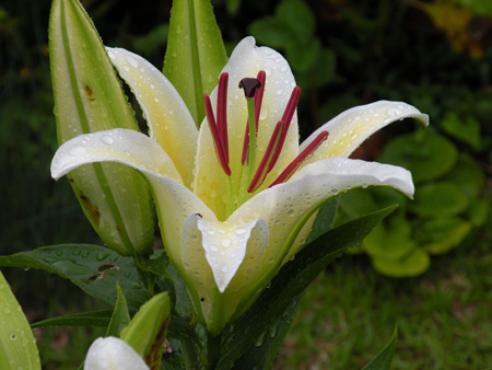 こちらの空模様は今日から雨に戻った。それに合わせて「シェルブール」が咲き出したのはできすぎている。虫は来ないだろうから、「雨傘」を差してあげようか!