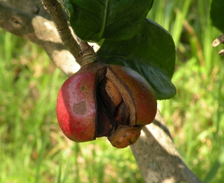 リンゴツバキの自生地は、各説あるようだが、屋久島を中心とした温暖の地のようだ。とすれば、安芸西条のように春先非常に寒いところで耐えられるだろうか。でもそれが元気だったからめでたいというわけ。