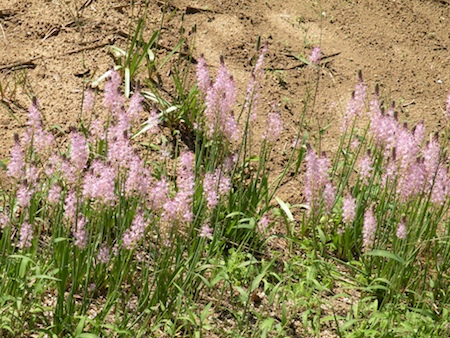 写真は、年々拡大する群落に主眼を置いたので、1つ1つの花は判らない。背景の畑地は休耕している。だから来年も楽しませてくれることを期待する。別名「参内傘」。