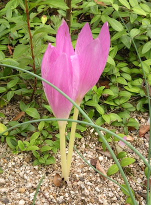 葉のない花は頼りないのだが、葉が出るのはヒガンバナのあとの春先だったと思う。