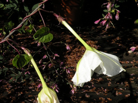 この写真は少し前のもので、雨の翌朝の朝日に輝いているところ。張りを失った姿に哀愁が漂う。