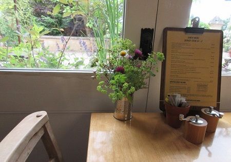 ▲カフェのテーブルの上の花が自然な感じで素敵。