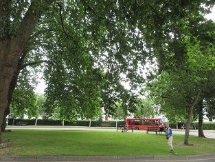 大きな木が公園に見えるけど、ここは、チェルトナム市街地のコーチ・ステーション(バス乗り場)。