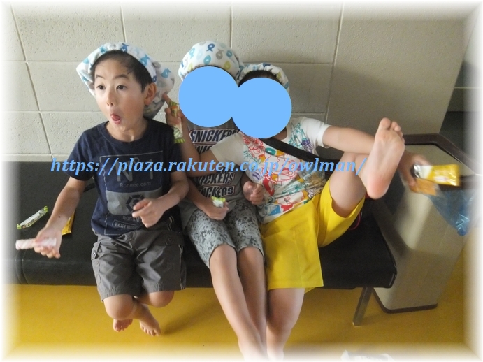クラスの子と三人でおそろいのプール終わった後のタオル帽子、手作りしましたよ^^