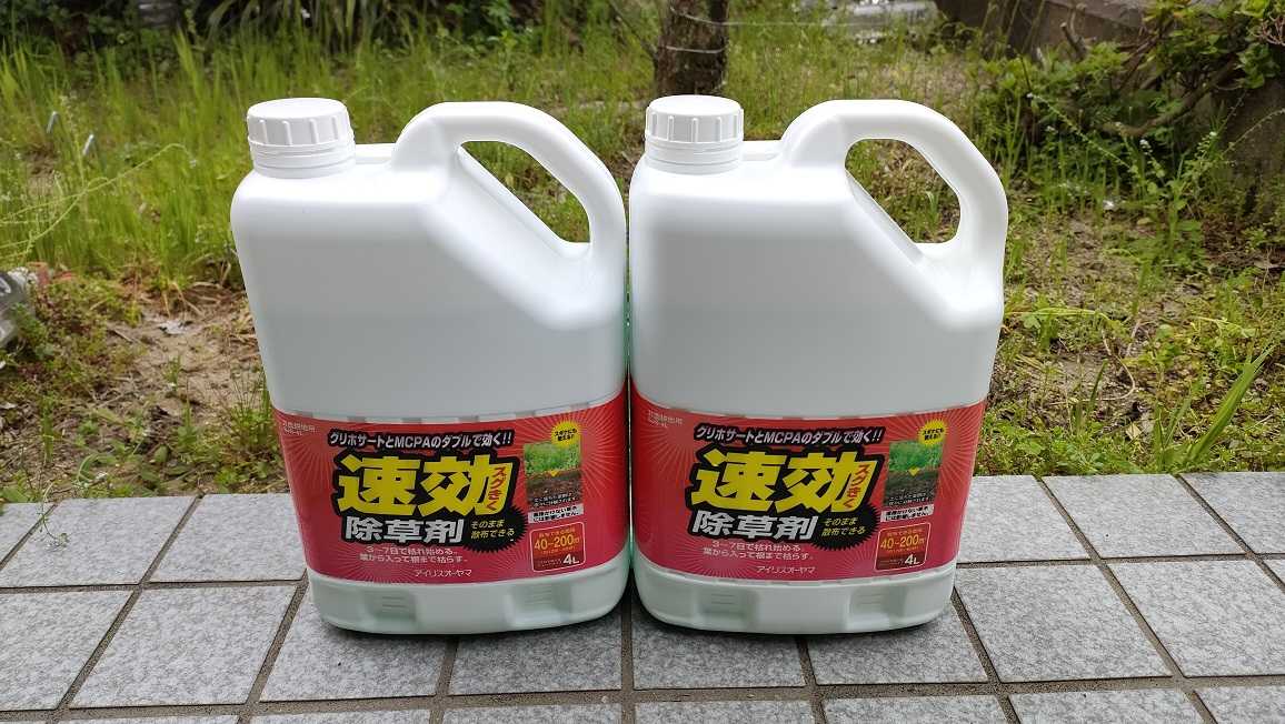 この時期になると散布するのはムカデ薬と除草剤です。先日建物基礎周りにムカデ薬を撒きました。庭も草が伸びてきたので除草剤を散布しストック用にamazonで2個注文し届きました。amazonプライムに入会したので送料は無料でした。