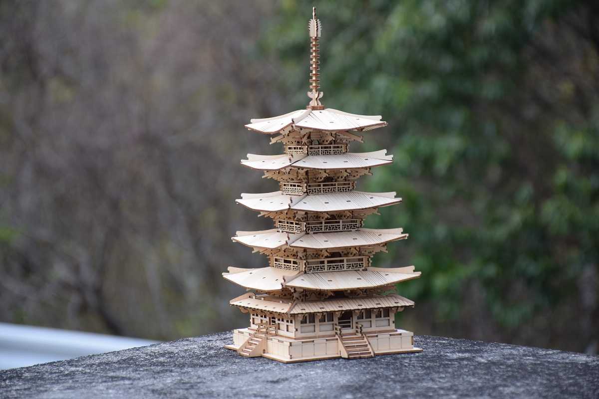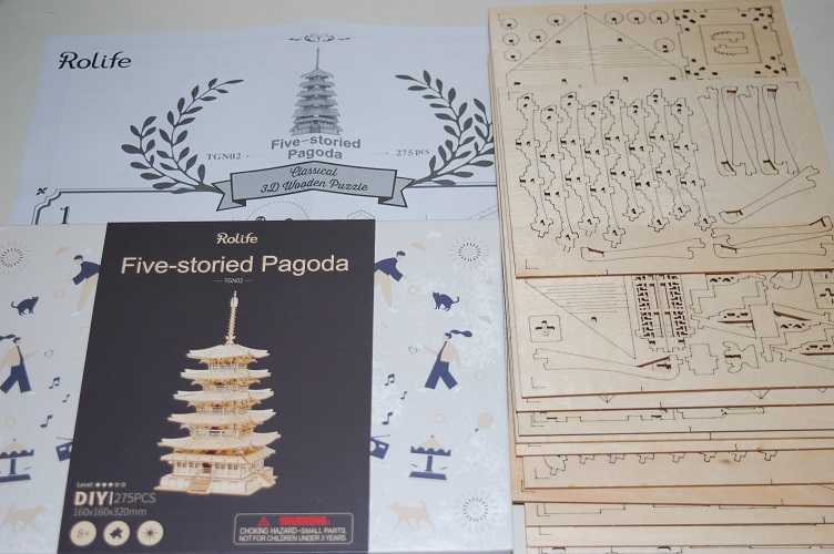 WOOD DIY 五重塔の製作に入ります。amazonで見つけ購入しましたがMADE IN CHAINAです。しかし作りは良いようで商品に問題はなさそうです。接着の要らない嵌め込み式で組み立てしていきます。