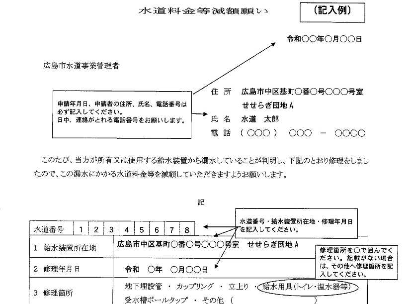 先月給湯管ピンホールにより漏水が発覚し修理して貰いました。銅管3ヶ所交換し10万円請求がありましたが先日の検針で6㎥漏水していた事が分かり、水道局に問合せすると減額されるという事で写真の減額願いを提出しました。漏水現状写真も工事代請求書も不要でした。床鳴りからおかしいと床下を見て漏水が分かりました。時々は水道メーターを点検し漏水がないか確認した方が良いです。