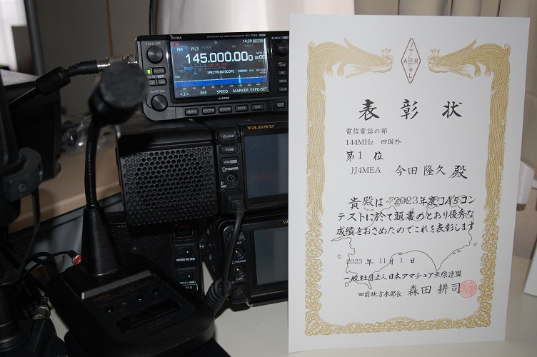昨晩から6m AND DOWNコンテストが開催されてます。JARL主催のコンテストは基本的に10W以下で参加してます。下記写真の賞状は全て自宅から10W運用でした。6m AND DOWNコンテストでは以前移動運用先からハンディ機2.5W運用で部門入賞し賞状を貰いました。昨年はIC-705 QSOパーティも兼ねてJCC#350107/4から5Wで参加しましたが入賞は無理でした。