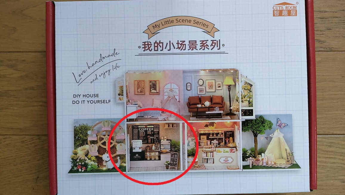 27個目の中国製ドールハウスamazonで購入しました。最近全般的に価格が上がってますがこれは2,950円でした。小ぶりなミニチュアハウスですが照明と風塵予防ケース付き。国産の木工ボンドも付属していたので日本代理店の心使いかと思います。先日商品違いで返品した中国直送の商品とは違います。