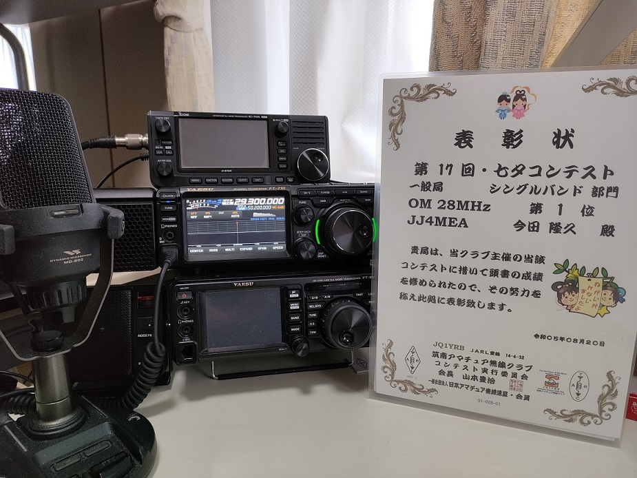 今週末のコンテストは自宅から10W運用で参加します。毎年参加局サービス局の少ない寂しいコンテストです。七夕コンテストを除きコンテスト、アワードはIC-705で運用してます。入賞が目的ではなく電子ログ提出はボケ防止です。