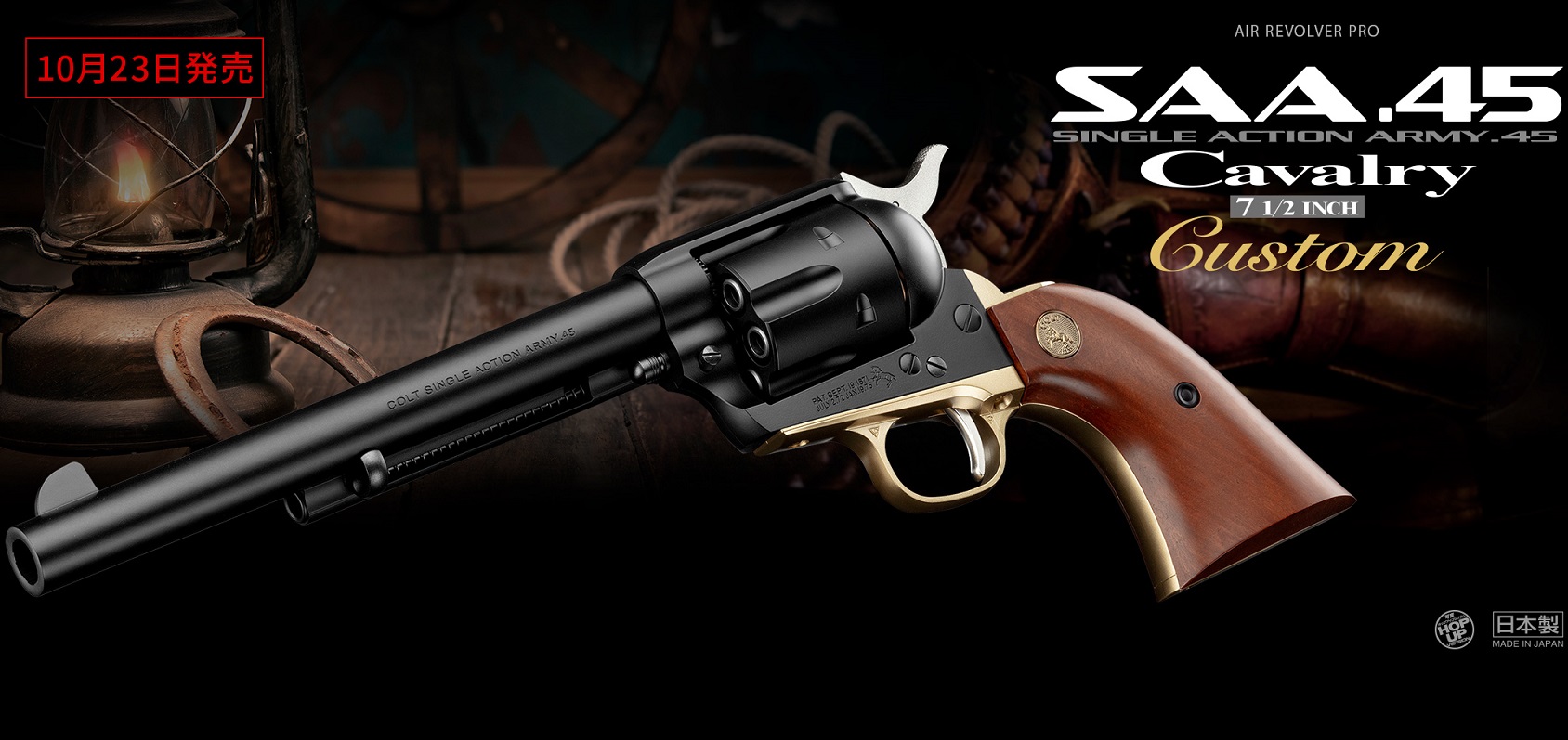 一番好きなGUNはコルトSAA(シングルアクションアーミーリボルバー)で銃身7.5インチのキャバルリーモデルです。今回東京マルイで発売されたキャバルリーはヘビーウェイトモデルではないため購入予定はありません。現在所有のコルトSAAは写真下の3丁でBB弾使用のガスGUNです。シルバーモデルはヘビーウェイトGUNですので3万円以上しました。