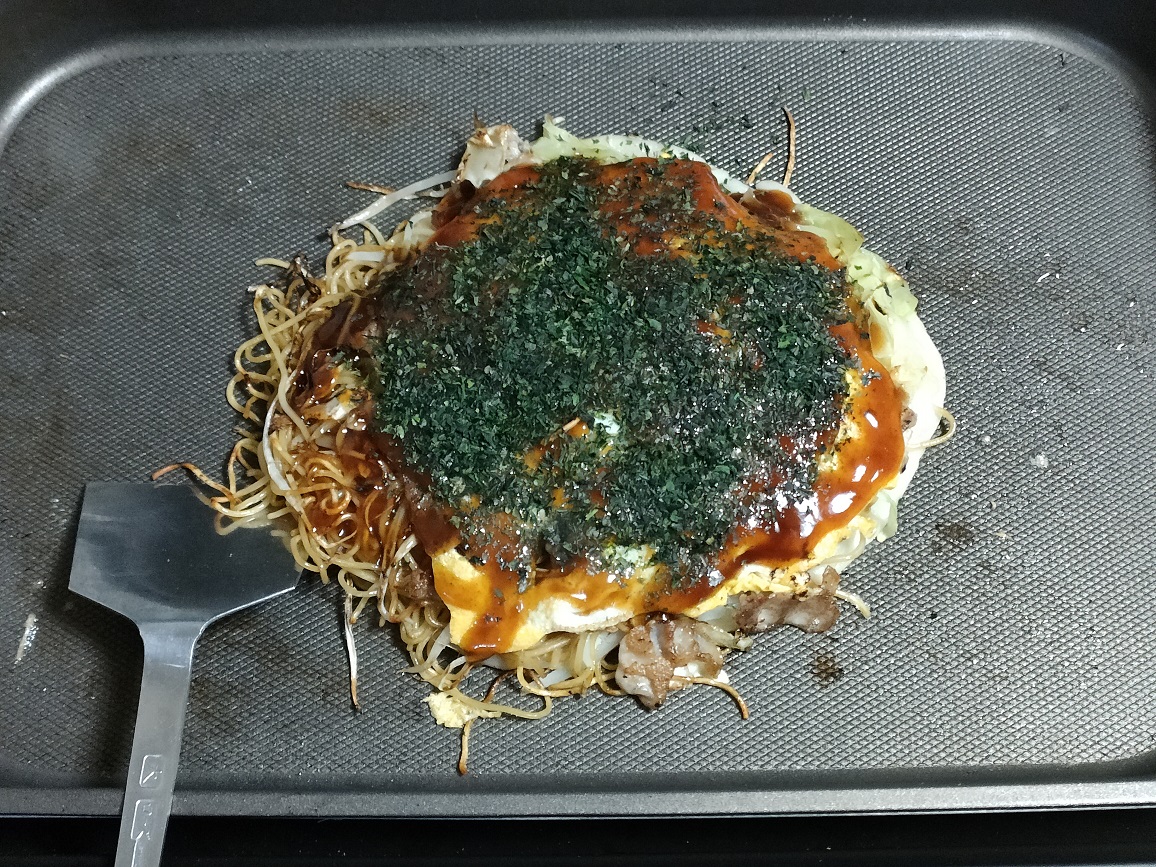 広島に観光に来られたら皆さんお好み焼きを食べられます。私はお好み焼き村とかで外で食べる事は殆どありません。自宅でホットプレートで美味しく作れ原価は300円程度です。コツはキャベツが甘くなる程焼いたらひっくり返せばOKです。写真は そば肉玉 作りました。翌日は うどん肉玉 (写真下)作りました。