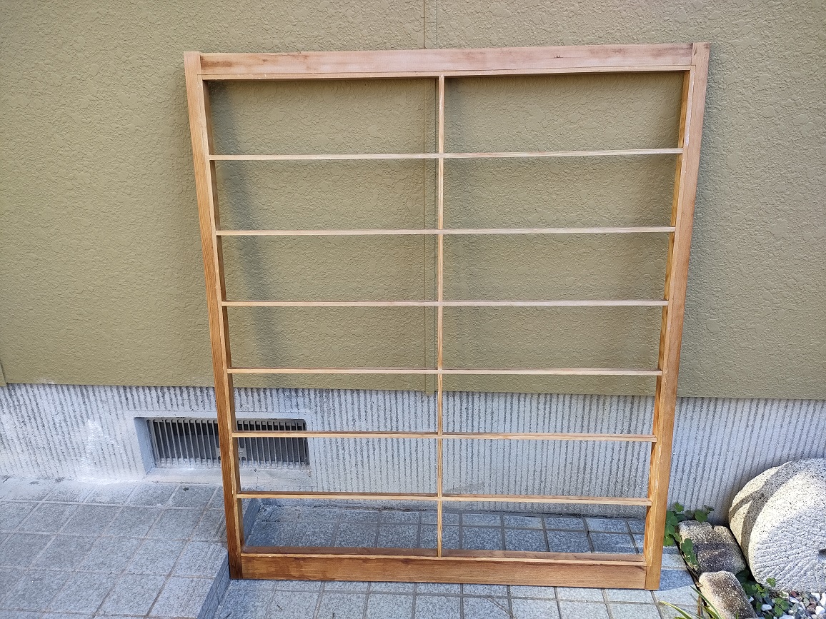 和室の内障子が日に当たって破れてきました。水スプレーで噴いて暫くすると綺麗に剥がれてきました(写真上)。10年前に買って残っていた障子紙に昔ダイソーで買った糊があり張ってみましたが(写真下)何とか大丈夫のようです。