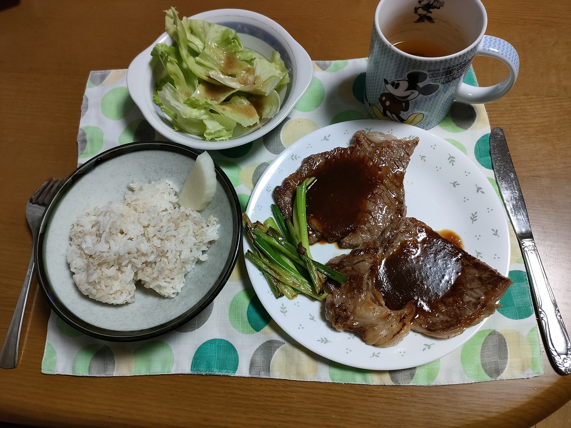 週に1日はステーキです。魚は煮魚が多いです。茄子のそぼろ煮は簡単に出来上がり。余った豚肉で豚丼で安上がりです。鶏肉が余っていたらチキンライス。ビールはビタミン類が多くありノンアルコールです。