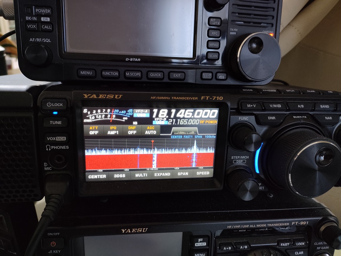 この時期はスキップして国内は北海道と沖縄しか聞こえません。でも昨日、一昨日は短時間1エリアが開いて交信出来ました。スコープ見てノイズばかりでもダメ元でCQ出すと1エリアから59で2局づつ呼ばれましたが、長話してるとフェードアウトしカード交換の約束が出来なくなるので要注意です。