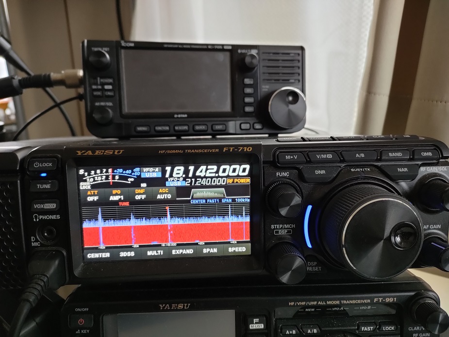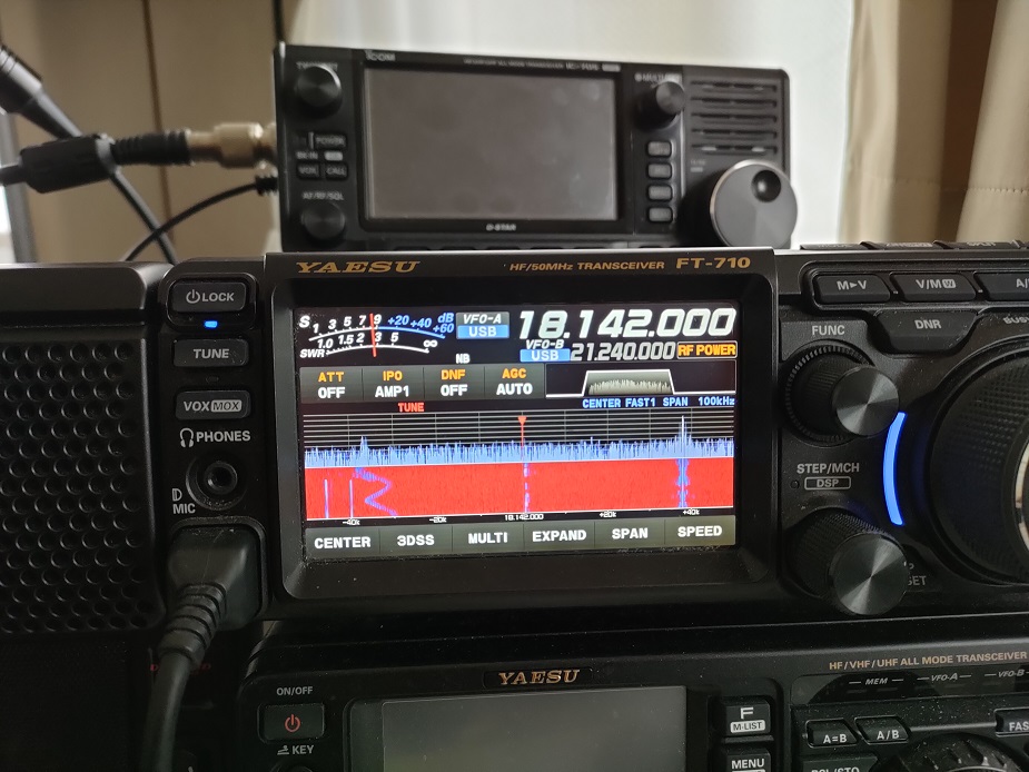 この周波数バンドは国家試験で取得し第3級アマチュア無線技士以上でないと運用出来ません。スコープ見てもコンディション悪い中でもCQ連呼してると1エリアから59で声が掛かりそれから2,7エリア、韓国から1時間以上呼ばれコンディション落ちました。今シーズンは2エリアと初交信しかも4局共59/59でした。