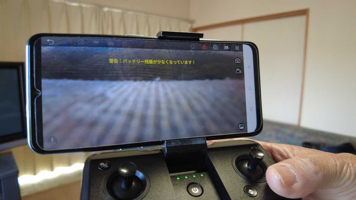 トイドローンには珍しくバッテリー残量警報があります(写真下)。
