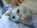 今日はミケオの再診日。風邪を引いたので先週病院に連れて行きました。食欲があったので注射はせずに1週間、薬を飲ませる事にしたのですが鼻水が止まらず、もう1週間お薬を出して貰う事にしました。抗生剤+消炎剤とお薬が2種類になったので、飲ませるのが大変。どうしてもイヤイヤされる。こんな事なら初めから注射してもらえば良かったかな。私が近づくと顔が引きる・・・よね。やっぱり。ちなみにお外を出歩いた足で首をかいたらしく、両頬が汚れてます。ミケちゃん。後1週間頑張りましょ~。