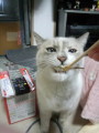 明けましておめでとうございます。今年もニャンともども宜しくお願いいたします。鯵をがっつくグレコです。(調味料は一切加えておりません♪)いつもは手で食べさせてあげるのですが、今回は携帯のボタンを押すために割り箸で。この写真を撮った後は、ちゃんと手で食べさせてあげました~~(^◇^)