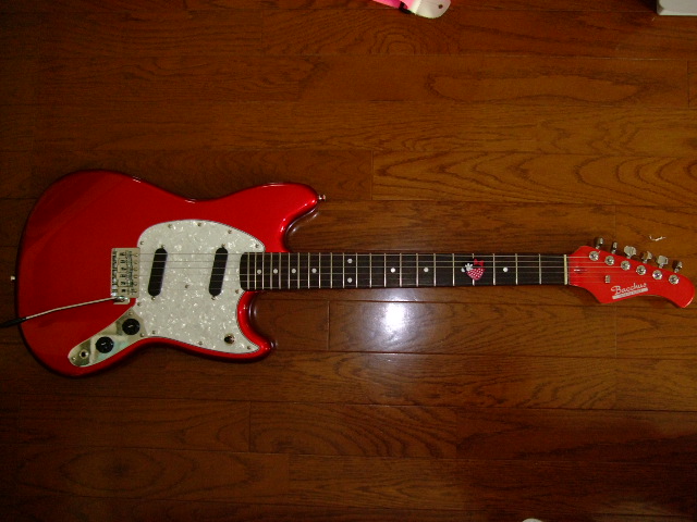 子供用ギターとしてバッカスのモデルBMG-280けいおんで使われているのはフェンダーのムスタングムスタングを試奏したら、チューニング狂いまくり状態どーもブリッジにひと癖あって、仕様らしいムスタングのボディーにストラトのブリッジを付けた仕様をサイクロンというけどバッカスのこのギターをチョイス初心者だったら余計にこちらを勧めたい サウンドのほうは、普通のシングルサウンドで特筆すべきものは無し色はキャンディーアップルレッドでムスタングと同じピックガードはラメが入っていて高級チックに見えるリヤとフロントのミックスがやはり良い音値段は2万ちょいだった ユニバーサルシリーズミディアムスケール 重量もかなり軽いボディー材はアルダーネックはメイプルのインディアンローズウッドPUはシングルオリジナルマシンヘッドはロトマティックタイプこれが定価29800円とは安い PUセレクターSWが下にあるので、座りながら弾くとだいたいフロントになってしまう。 通常の感覚では安いと思うが安いなりの理由もあったピックアップセレクタースイッチが購入後3日目で故障VOLポットも初期不良っぽくて音が出ない時があったこの2点を除けば値段以上のギターだと思う