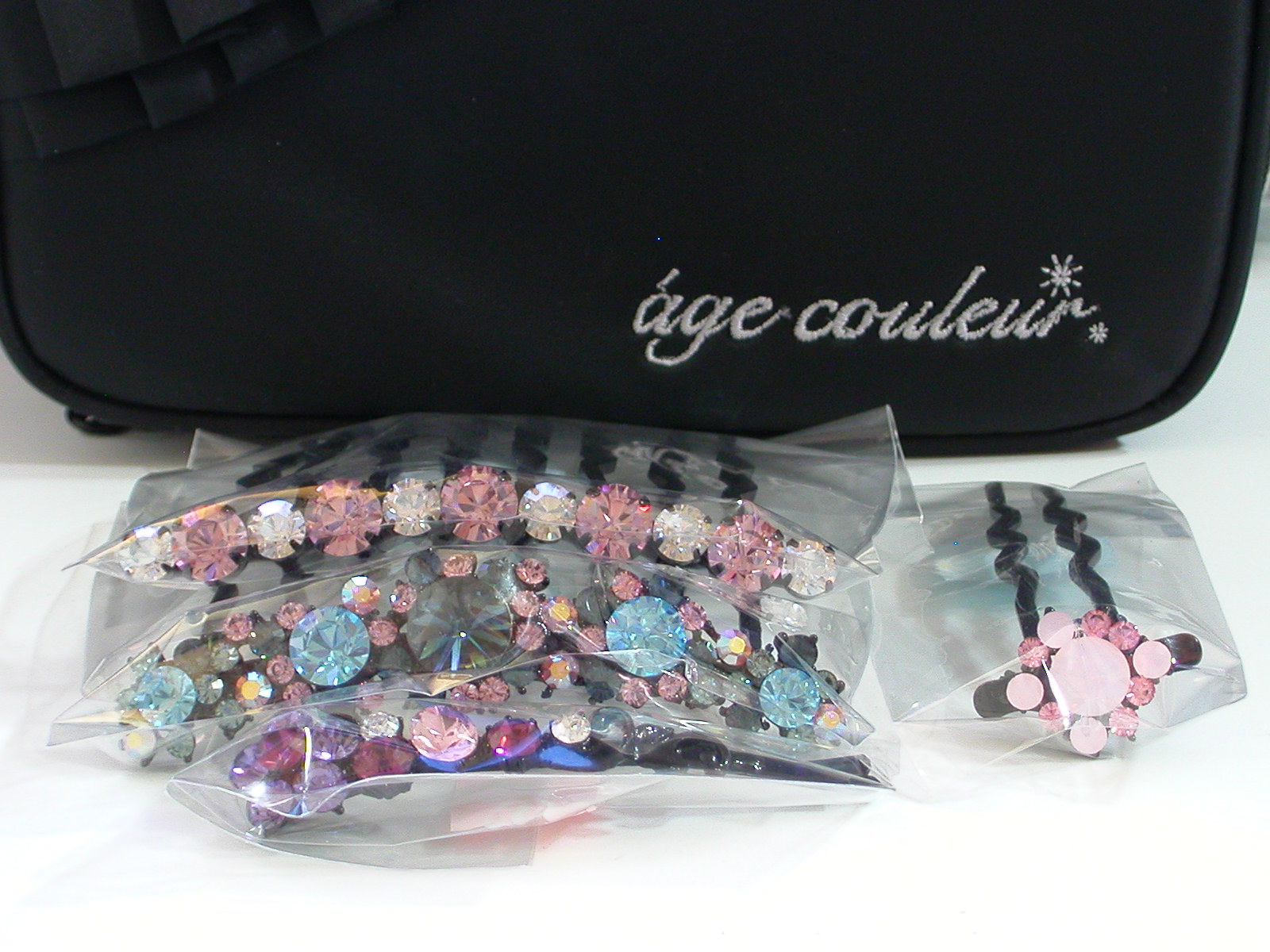 色のグラデーションに弱いぴろり。しかも送料無料にも弱いのです。発送保留分の送料対策にポチしちゃおうか悩み中。ちなみに、お目当てはパープルミックスです。お見逃しなく!決算セール価格!アージュスティックパーフェクト送料無料!![「デュー5ポイント」(オフィスブラック土台)] 夜会巻きコームLは使えないんだけど、これはその名の通り、クラシカルなデザインでスキです。しかも激安だぁ!!お見逃しなく!決算セール価格!アージュクルール[【夜会巻きコームL】クラッシー]素直に可愛いと思ってしまうデザインですね。売り切れカラー続出ですので、気になっている方はお早めにどうぞ。お見逃しなく!決算セール価格![アージュスティックフレックス「ツインヴェル」]これは、いつだかの福袋に入っていた(福袋限定色)ので持っているのですが、ちゃんと可愛いくて使えるものだったので、当時はかなり喜んだ記憶があります。今でも気に入ってマスお見逃しなく!決算セール価格![アージュコーム「シェーネ」]大粒スワロシリーズの新作はアージュパーフェクトコームです。クリスタルボミューダブルーはもっと色んなデザインで出て欲しいな。魅せる大粒スワロ[アージュコームパーフェクト「オーバルティア」]