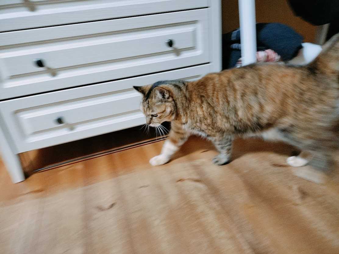 でも私が投げたネズミが不運にもマリの鼻に 「コツン」