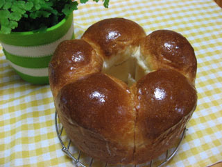 今朝のパンはこちら~ 昨日の夜焼いた ミルクパンです 最近18番のテフロンシフォンケーキ型 18cm とっても可愛く焼けるので 気に入ってマス いつもながら ちょっと焦げすぎかなって思うんですけど 180度であっいう間に こうなっちゃいます 途中温度を下げてはいるんですけど 高温短時間がいいのか 低温でじっくりがいいのか いつも迷っちゃいます みなさんの焼き温度や時間 是非教えて欲しいです~ でも 生地はふわふわに焼けてましたよ~ ミルクパンはキメが細かい気がしますよね~ いい香り 今回はHBで作りました 食パンの計量で水を牛乳に 砂糖を大スプーン一杯追加して 3杯入れました! イーストはサフ インスタント・ドライイースト金 500g ドライイーストは発酵が安定しているので 出来上がりの時間が 想定できるので いいですね 天然酵母の場合は 時間のあるときでないと いつ焼き上がる の~って 感じです それも楽しいんですけどねっ 2日くらい酵母をほったらかしておくと 元気がなくなる気がして 頑張って作っています とりあえず お手本の『自家製酵母パン』の本 レシピ制覇が目標でーす 今日はすーっごくいいお天気です 連休中はお天気いいみたいですね!良かった