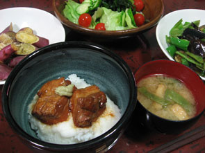 昨日の夕食で~す(^o^)夕飯ネタは久々です豚肉の角煮~とろろ丼ベーコン用の豚バラを沢山買ったので、半分は角煮~にしました!!角煮といえば からしを付けて食べるのが普通だよね~と思うんだけどこれはわさびで食べます(^o^) とろろと角煮~わさびが味を引き締めてくれますよ~~実家から送ってもらったお野菜も沢山食べなきゃねそれから~昨日 近所の八百屋さんで 新ショウガを買いました~~とっても安かったので~~ これはー!!と思い、ガリを作る事にしたよ~ 皮をむいて~ 繊維に沿って薄切りにします~ お湯でサッと茹でます(^o^)熱々の甘酢を流し込んで漬け込みます~~先日漬けた ミョウガからきれいな色が出ていたので この甘酢も少し加えたよ~!! ほんのりピンクで美味しそうになりました(^o^)ガリは子供達も大好き!!お寿司屋さんでも まずは山盛りにスタンバイ↑ 回転寿司ですけどね・・・・(^^;)出来上がりが楽しみでーす今日は海に行ったので もう一本更新!!します(^o^)