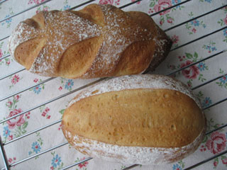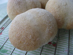 今日もまたまた暑さ舞い戻り~~暑かったですねえ~~~だけども だっけど・・・・(笑) 冷蔵庫で元気のなくなってきたレーズン酵母ちゃんでパンを焼きましたよ~~一応 ふたごパンにしたつもりでしたが・・・見事に割れ目なし・・・って感じですフォンデュ フランス語で 「割れ目の入った」という意味だそうです(^^;)ライ麦とプレーンヨーグルトが入ったフランスパンです! ↑ レシピはこちらの本からです~~ ↑ 一応 元気なようです・・・・ またおしり爆発っ失敗ですねっヨーグルトのせいもあるのかな?とってもモッチモチなのーそれと~ 昨日焼いた カスタードアップルロールー~♪♪こちらはイーストで焼いたパンです(^^) りんご沢山出回ってきましたね♪今日の出来事~といえば朝から資源ゴミ当番だし~(>_<) 午前中は小学校の参観もあって忙しかったなあ~ 午後からはお友達が来て大騒ぎ~これから 急いで晩ご飯支度しますっあ~っ そういえばね~ 今日 手を切ってしまったのーーーー包丁じゃないのよー オーブンシートであの繰り返し使えるタイプのオーブンシート!! 洗っていたら親指の付け根のところ切れちゃいました・・・・シューッとやったら 紙できっちゃうみたいに スパッとガラスファイバーで出来てるんでしたっけ????みなさんもお気を付けてくださいね~~