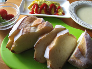 ~今朝の朝ごパン~今朝はこーんなサンドを食べたよ~~近所にあるカフェに ↑ こーんなサンドがあるの!!お店のはスモークサーモンと照り焼きチキンの2種類あるんだけど 我が家のはチャーシューと卵サンドだよ!昨日 クイックヨーグルト酵母で焼きました成形は麺棒で適当に伸ばして~折りたたむときに オーブンシートを挟みこんでいまーす(^^) そのまま2次発酵~ 焼成します! ↑ こちらの白パンのレシピで作りました~~ 手作りチャーシューは前日のつまみの残りね・・・(^^;)話は変わり~なのですが 昨日一年生の娘が学校から こんな本を借りてきました 小学校の家庭科の授業でやりそうな??ゆで卵~とか野菜の切り方~みそ汁の作り方~なんかが書いてありました!!懐かしいですね(^^)娘・・・・目覚めたか??? というわけで 今日はフレンチドレッシングにチャレンジ~~ 計量スプーンを使って材料を入れて~ シェイクシェイク~早速今晩のサラダで頂きまーす(^^)子供たちがお料理に興味をもってくれるのは とっても嬉しいな♪って思う母なのでした~~