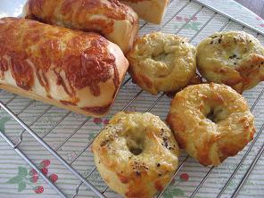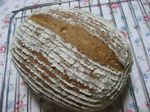 こんにちは~~ fran bran 体調も戻って 本復帰ですとーーーってもお騒がせしてしまいましたが、私のも治ったみたいです^^(でも視力は落ちた感じはあるなあ~)ご心配をおかけしましたまた温かいお言葉どうもありがとう~さてさて今日のパンですが~~(って先週作ったパンだけど)ヨーグルト酵母でベーコンチーズ食パン酒粕酵母で米粉カレーベーグルベーグルは 米粉200グラム 酵母160グラム カレー粉大さじ1砂糖18グラム 塩4グラム 水110cc~もっと入れたかも~お友達の3ワンコ母さんのところで見た米粉ベーグルがとっても美味しそうだったので~作ってみたよ~~チーズトッピングに黒コショウ私も米粉のベーグル好きだなあ~とっても気に入りましたよ 続いては~メゾンカイザー木村周一郎のパン のレシピから~~ライ麦自然発酵種にチャレンジ ライ麦とモルトエキスでできた元種・・・どろんとしていてエキスって感じです。とりあえず~バタールにチャレンジ 粉500グラムで水分が70パーセントの350グラムあのドロドロの発酵種が20パーセントの100グラム入りますほとんど水分量90パーセントって感じではないですか手ごねで30分捏ねてやっとまとまったけどクープは開かないし~&爆発ーーで見事撃沈ですホントにハードパンのとじ目が苦手です。。。。いい方法があったら教えて~~またリベンジだわねがんばるぞー!!でも食べてみると・・・・そりゃー美味しかったですよ(笑)