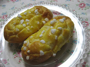 こんばんは昨日焼いたパンですよ~シュークリームパンほんのりしあわせ。おうちパンみかさんのこの本のレシピから~♪中にはカスタードクリームがたっぷりですよシュー生地を最終発酵後のパン生地にのっけて焼くんだけど、あまりシューらしく?膨らまなかったわあ~~リベンジだわねっとーーーっても美味しかったですよ~~このあられ糖がポイントかな続いて~~~ヨーグルト酵母で焼いたパン黒糖ロールです~~あんまりロールに見えないけど(^^;)さっき夕食前だってのに 8個完食してしまったあ~~やっぱり酵母のパンはモッチリしてて最高~パンがあまり好きじゃない長女も酵母のパンはいっぱい食べてくれるんだよ 昨日はみんながお休みだったので、初詣に行ってきましたよ~毎年近くの 鎌倉八幡宮に行っています(^^)とにかくすっごい人でした~~~でも階段の前でロープ規制していなかったから まだ良かったわそうそう~おみくじ!も引いてきましたよ(^^)去年は末っ子だけが→小吉で あと全員 凶だったのですーだからちょっとドキドキだったんだけど 全員 吉!でホッとしちゃったりして。。。去年 3ヶ月位は凶のおみくじの事を気にしていたんだけど~~そのうち忘れちゃって(^^;) でも何事もなく健康に過ごせる事が出来て良かったです!今年も家族みんなが健康でありますように・・・と思います(^^) それから お楽しみ!といえば~子供達は屋台で 苺あめを食べたよ~私は 焦がしバームクーヘンいろいろ食べ歩きができて楽しいですよね!!お正月も終わり~~ 明日から 新学期です今日はそれぞれ子供達に ぞうきん!!をミシンで縫ってもらいましたよ学校が楽しみな 息子あまり行きたくない娘そして早く給食のはじまって欲しい母でした・・・