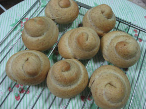 こんにちは~本日2回目の更新です~~1本前は ミニチュアパン完成! です良かったら見てね~酒粕酵母が完成して~~まずはやっぱりこれですねえ~~フランスあんパン天板を2枚重ねて~サンド焼き~お焼きみたいですねふんわりあんパンも好きだけど、私 外がハードなフランスあんパンが大好き中には 玉三の粉末こし餡 を入れてみました(^^)2次発酵中に 急遽サッカーの応援に行くことになり~ちょっと過発酵してしまったの。でもほんのり~甘酒?!の風味がして~とっても美味しかったです!!他の自家製酵母と違って、ちょっとべたつく感じがありますね~~米つながり~~?って事で 米粉のパンとも相性がいいのかも今度試してみますね~~~続いて~~ 主人の会社の方に~パンを焼きました(^^)左側の葉っぱみたいなクープは お友達のカプチーノ♪さんのまねっこをさせてもらいました(^^) 可愛いですよね♪左が200度で焼いたパン 右が180度で焼いたパン 同じ焼き色だけど。。。(-_-)温度はまだまだ試行錯誤が続いています~~でもパンは喜んでもらえて 嬉しかったですよん~ ここ3日間くらいパソコンを開いてなかったんですが・・・・実は私のパソコン。。。このごろ調子がわるくて突然ブチンと電源が落ちてしまったり立ち上がらなかったり。。。。してるんですよ~去年の暮れ頃から 何度かあったんだけど~~でも今日はなんだか ご機嫌がいいようですもうそろそろ買い換えなのかな~~とも思うけど・・・今月車検だったので 頭が痛いですよ~~どうしよーーーーっ 話かわり~ 昨日ちょっとプチハッピーがあったの~聞いてもらえますか~私、レジ専門のアルバイトをしているんだけど・・・・(スーパーじゃないんだけど)あるお客さんが 「いつもありがとう~~」って言ってくれました!なんと注目すべきは 「いつも!!」ってところです!去年の11月に働き始めて 2ヶ月が経ちましたが。。。。何度も来て頂いてるお客さまなんでしょうね。。。ハッと嬉しくなって・・・・・また頑張ろうって気持ちになったのです(^^)笑顔でいること。。。大切ですよね。笑顔の中に笑顔がやってくる。。。ですかね!子供の事もいろいろあるけど、やっぱり母が笑顔でいること一番!頑張らなくっちゃ~!!って思いました今日も長くなっちゃった最後まで読んでくれてありがとう~