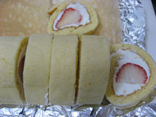 こんばんは~今日のデザートは苺ロール夕食後にこんなの食べちゃいけないよね~と思いつつっ初仕事!頑張って来たから まあいっかっ なんて(^^;)午前中に焼いて~アルミホイルにくるんで 冷蔵庫で冷やしておきましたよ苺は31日にとってもお安くゲットしてあったのです~~苺・・・あまおう だったかな?とっても大きい苺です(^^)クリスマスケーキも手作りにしなかったから~子供達にトッピングさせましたよ 長男 作です~ 長女 作です~そして一番欲張り&豪快な作品がこちら 2歳末っ子作です~(^^;)それぞれ個性的!?でおもしろいですね 今日のおまけ画像です こちらは~秋田の実家から送ってもらった お餅です~黒豆とクルミが入っているんですよ!それにしっかりお砂糖が入っているのおはぎ餅?!って感じかなあ~~秋田ではお赤飯にもお砂糖が入っているので 甘いんだよーーー(^o^)今年は里帰りできなかったので~~自宅でお餅を食べながら ふるさと気分を味わっています!!ああ~正月って 間違いなく太るよね~~~