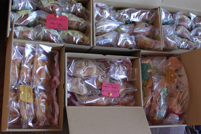 こんばんは~パンとお菓子のワンデーショップ昨日無事に終わりましたよ~昨日も寒かったのに~開店前より並んでくださって本当にありがとうございました!!嬉しいなあ~私も頑張りました^^ やっぱり前日は徹夜(^^;)思いつくままに~もくもくと作ったパンとお菓子。出来上がって数えてみると なんと21種類1種類が平均して5個くらいだとすると~やっぱり100個超えてるっ作りきれないパンが2種類ほどありましたが~(^^;) 楽しかった~^^ラッピングして~並べた時が一番幸せかも(笑)午前の分、午後の分と半分に分けましたが、どちらもオープン後すぐに完売させてもらいました^^シフォンケーキもいろんな味がいっぱいで~選ぶのが楽しいですね^^チョコレートケーキや プリン、レアチーズなどなど~ありましたよ^^声をかけて~参加してしてくださった皆さん いつもありがとうそして寒い中 遠いところから~そしてご近所さまも~買いに来て下さって本当にありがとうございました みんなの暖かいお言葉が また私の力になっています^^ 幸せ者だね 2月11日。バレンタインデー用のチョコ作り。。。全国のお母さん達 大変です今は女の子同士で交換する~友チョコが定番だものね~6人分そしてみんなとは違ったものでーーーーー!!と言うことで・・・ココア生地のベルギーワッフルを焼いて チョコをトッピング~というものになりました。完成写真忘れたーーー小3娘。頑張って手ごねやりました^^「ホームベーカリー使えば~」と母。「愛情が入らないじゃん」と頑張っておりました(笑)友チョコだけどね~(^^;)お友達からもたくさんチョコをもらって来て 今日は3食チョコデザート付きです^^ 今日から秋田の母が遊びに来ています^^またまたお昼はピザにしました 自家製ベーコン&ナス&オニオン エビ&アボカド&トマトパンが大好きな母。楽しみにしてくれているので 毎日パンを食べさせてあげたいで~す あ!そういえば なんとカウンターが100000HIT超えていました~あと2,3日平気かな~と思っていましたがどなたが踏んでくれたんでしょう^^100000HITでは カウプレをやるぞーーーーーっと前々から思っていたんです。また詳細は次回にでも~お楽しみに~にほんブログ村↑いつも応援ありがとうございます^^