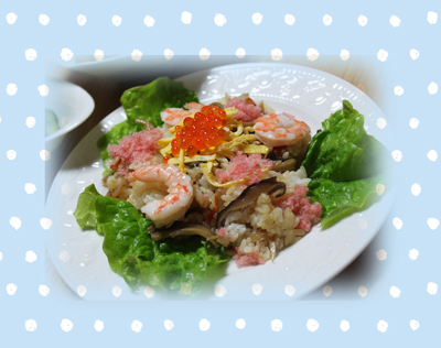 こんにちは~卒業式がおわって~ほーっとしていたんですが~終業式がまだだったんですよね・・・・明日で幼稚園は終わり。小学校はあさってで終わります~^^今日は朝5時起きで 息子は友だちと釣りに。午後からはみんなでスーパー銭湯に行ってきましたよ。ずいぶん久しぶりでした^^夕方からは ユニフォームを返しにサッカーへ。息子はそのまま残って練習へ(笑)やっぱりじっとしていられないなあ~・・・わたしも息子も(笑)今日の写真は昨日の夕飯です久しぶりに手の込んだ?!夕飯を作りました(^^;)ちらし寿司干し椎茸ともどし汁で煮た具材はやっぱり美味しいですね^^ 新蕗の煮物 皮をむくのが大好きな末っ子ですおぼっちゃまキュウリ レッスンで登場のサムジャンで ブラウンエノキと舞茸のガーリックバターソテーレッスンに登場のガーリックパンのバターですよ^^長いもとネギ 豚肉のラー油炒め。豚肉は細切りにして醤油を絡めておき 片栗粉をつけて揚げます。ごま油で強火で炒め 味付けは塩胡椒のみ。仕上げにラー油を回しかけます。シャキシャキの長いもがとても美味しいですよ^^のんびり買い物をして~今日何作ろう~と考えたのは久しぶりでした^^「あ~いいなあ~^^」なんて思いながら。さてさて~何日この気持ちが持つかしら?(笑)しばらくフリーになるので パンとお料理 頑張らなくっちゃなあ~と思っていますよ^^ 今日の画像 ちょっとイタズラしてみましたよー^^フォトショップでフレームと背景を入れてみました~今まで画像を縮小する機能しか使っていなかった私(^^;)ここ一週間パソコンにへばりついていたので、新たな発見がいっぱいあった気がします~^^にほんブログ村さぼった分 頑張らなくっちゃ~!応援よろしくお願いします(*^_^*)