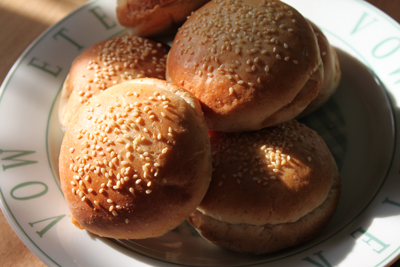 こんにちは~今日は暖かいですね^^末っ子は熱は下がったものの、今日は幼稚園をお休みしました。病院に行ってきたけど~マイコプラズマが流行っているから~なんて先生のお話でしたよー今日は食事もとれるようになって 一先ず安心です^^ 昨日焼いたパンで今日は 豪華な朝ご飯でした(笑)エッグベネディクトイングリッシュマフィンを半分にして~ハムやチーズそしてポーチドエッグをのせて オランデーソースをかけたもの。今日のはハム&チーズカットです~(^_^;)アメリカンな朝食です~^^オランデーソースは バターで作った手作りマヨネーズみたいなもの。卵 たまご バター!!で カロリーが少々気になりますが・・・(^_^;)たまにはいいよねっポーチドエッグは酢を少々入れたお湯の中に卵を落とすんだけど入れてから2分で いい感じになりますよ^^オリジナルハンバーガー中のソーセージパテはオリジナルの自信作ですよ^^こちらは 子ども達のお墨付き。「マックより うまい!!」だそうです(笑)6月の教室ランチで召し上がって頂きま~す さてさて~今日は中学は体育祭の代休だった訳ですが~やはり部活へ。初めて試合が入って 旅立って行きましたが・・・・親は付き添わないのよねー 電車に乗っていくのよねー電車賃大人料金なのよねー制服で行かなきゃいけないんだねーなどなど~今までとは丸っきり違うのよね(^_^;)なんだか不思議な気分です・・・・^^ 日が長くなりましたね。そのせいか 夕食にとりかかる時間が日に日に遅くなっているような気がします。今夜は何にしようかな。買い物行ってきま~すにほんブログ村参加しています~^^いつもありがとう~^0^