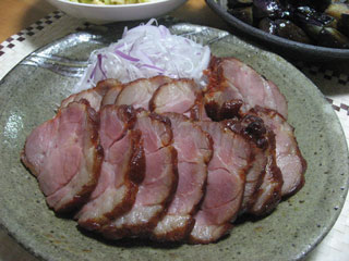 今日の夕食でーす豚肩ロースのブロックが安かったので チャーシューを作りました~チャーシューと焼き豚ってどう違うんだい?!っと書きながら思ったんだけど一応 チャーシューって事にしておきます(^^;)我が家のチャーシューの作り方はこちら~↓お肉に パプリカと砂糖を まんべんなくすり込みまーすパプリカと砂糖は同量です。タコ糸ぐるぐる巻いてね!このまま一晩冷蔵庫で寝かせまーす翌日、醤油、お酒、しょうが ネギの青い部分 あれば八角を入れて またまた冷蔵庫で2,3日漬け込みまーす180度のオーブンで20分~30分焼いて 出来上がり~簡単でしょ(^^) 白髪ネギをくるっと巻いて 召し上がれ~相変わらず おつまみ系おかずの 我が家の食卓でした(^^;) 今日も一日暑かったですね夏日でしたお洗濯がパリッと乾くと 気持ちいいですよね!私はお洗濯 干すのは大好きなんだけど たたむのが苦手おまけにアイロンも。洗濯をうまく干し終わると やったーって嬉しくなるんです変わってるかしら???(^^;)そうそう、以前植えた 枝豆の苗 大きくなってきましたよ~葉っぱをぺろっとめくったら なんと実がついてましたあ~お豆ちゃん ペラペラですけど・・・食べれるのかいって位(^^;)子供と大喜びしましたもっと大きくなってくれ~(^o^)これに喜んで またまた実がなる系の苗を購入~しちゃった今度はワイルドストロベリーだよ~しかも白い苺でもよく考えたら 赤くならない苺の収穫どきって 一体????(-_-)今度画像のせますね~ (*^_^*)