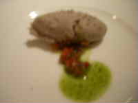 秋深し。たまにはキチンとしたものを頂こう。ジビエを食そうと企画して、六本木から10分ほどの『オー グルマン』へ。テーブル3つ、カウンター4席ほどのお店。予約で満席。コースは5775円・7350円・9420円。ボリュームが充分と聞いていたので、2皿+デザート+コーヒーの5775円に。アミューズは三元豚のリエット。ドライトマトが添えられて。早速ワインが欲しくなる。前菜はセップ茸とアルバ産秋トリュフのリゾット、赤ワインソース高級キノコが合わさると、滋味あふれる味に。メインは蝦夷鹿芯玉肉の網脂包み焼、ポルト酒の少し甘いソースでやわらかーい赤身はクセもなく。網脂がコクをプラス。甘めのソースと肉の旨味が口の中いっぱいに広がって。4人で行ったのだが、今日は目的がジビエなので皆それぞれジビエ料理をチョイス。これは野鴨のロースト、内臓のソースで。野鴨のモモとムネ。野鴨のモモが一番ジビエらしいパンチがあったかな。その他、猪のベーコンとか、ジビエのテリーヌなども。フレンチなのに、ちょっとずつ取り分けて回したりして。お行儀悪くて、すみません。デザートはマロンのクレープ。酒の香りたっぷり。ウワサどおり、デザートまで一皿のボリュームは満点。食後はコーヒーだけじゃなく、中国茶があるのも個性的。元ボクサーだというシェフは見た目はコワモテですが、とっても温かくて笑顔がステキ。********************************『Aux Gourmands(オー グルマン)』港区麻布台3-4-14 麻布台マンション103 03-5114-0195 予算:7000円~