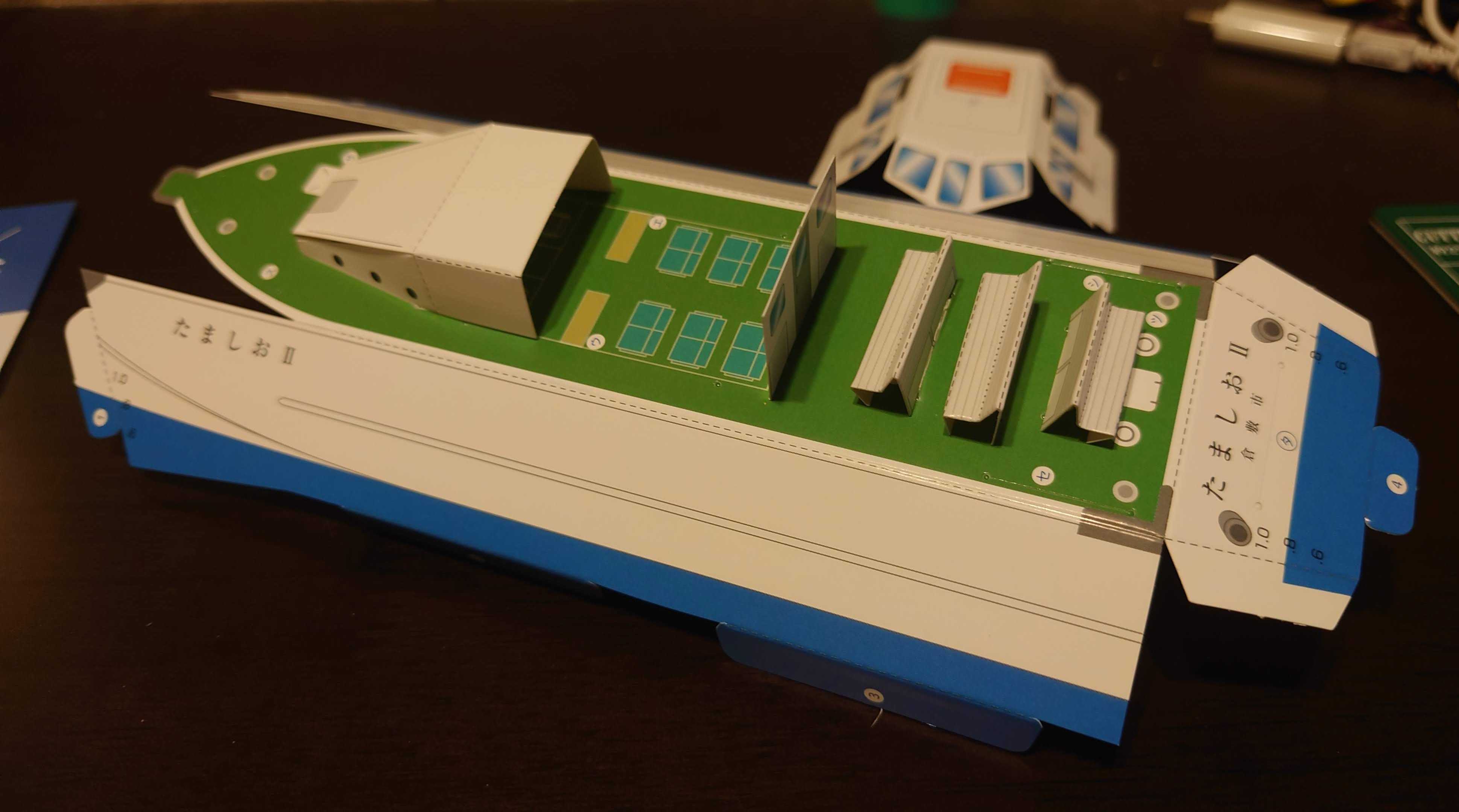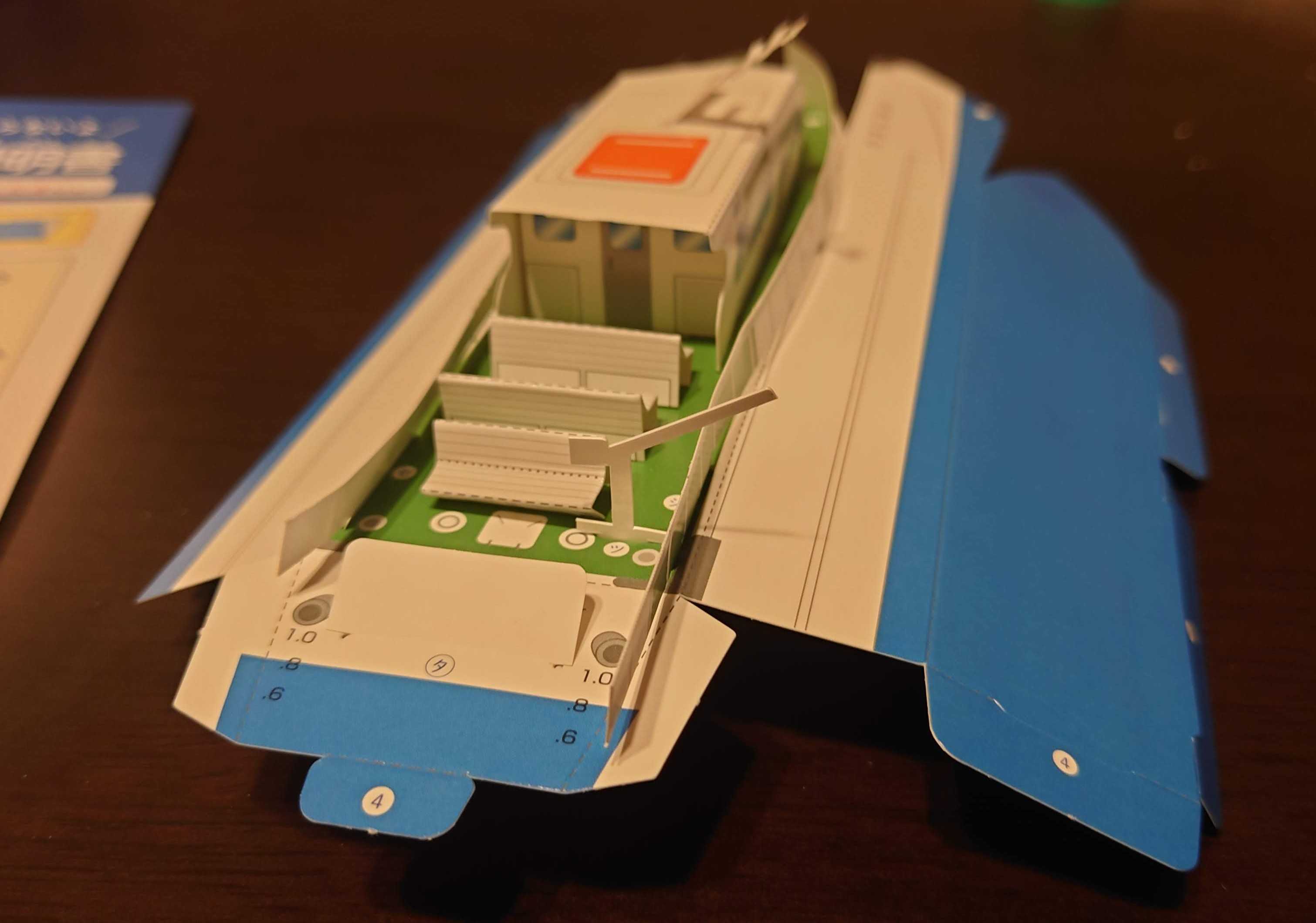 椅子などを付けていきます。船内の部屋の中の椅子は印刷ですね(笑)