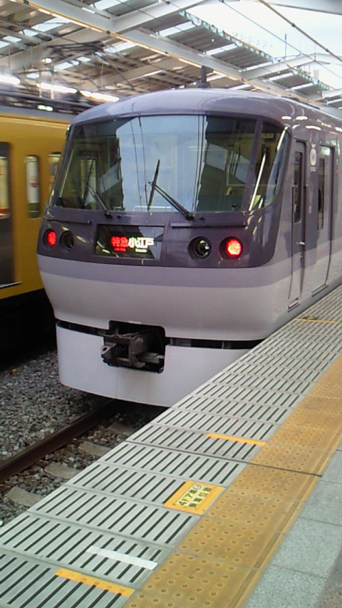 前の日、成田空港までお客を送ってポートホテル泊。川越まで回送して、夜のスキーツアーまでヒマしてて。。。久々に街に出よう!と、初めて西武鉄道新宿線に乗った。今まで何度も川越で昼STAYしてたけど、私が思ってた「川越駅」は「本川越駅」だと知った。ホントはSuica買おうと思ってたのに。。。PASMOになった(西武だから)。 所沢で乗り換えて池袋。。。と思ってたのに、座ったとたん寝てた。気付いたら所沢は通り過ぎてた。やっぱ、慢性寝不足? 結局、新宿で電気屋見て。。。気に入ったモノ無くて、CD買ってご飯食べて。。。 来る時は急行で時間かかったので、帰りは。。。レッドアロー。何年か前に秩父から池袋は友人と一緒に乗ったけど。。。何だか子供のようにウキウキ。私、実は。。。隠れ鉄っちゃん。。。半端者だけど。平日の午後、写真撮ってるのは私一人。う~ん、何だか。。。それに、ネクタイにトレンチコート姿。。。流石、特急料金取るだけあって、快適快適。川越まで運賃460円、特急料金410円。ま、納得のショートトリップ。