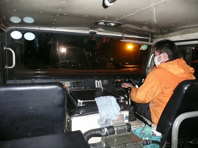 雪上車運転席 今まで色々なモノに乗ったけど、雪上車は初めて。スキーバスの北志賀STAY(昼間の仮眠)で、エージェントから指定されたロッジが満室。う~ん、全然寝てないのにぃ。。。とキレつつ、バス会社に連絡。このままだと間違い無く事故る。で、手配してくれたのが、ホテルタガワ。竜王スキー場のゲレンデの真ん中にあって、結構デカいホテル。駐車場にバスをとめて、ちょっと待ってるとお迎えが。でも、雪上車で来てくれるって話だったけど。。。軽ワンボックス。ま、寝れればいいか。。。と。でもでも、いつも仮眠してるロッジとは、当然、比較にならないほど綺麗だし。温泉入れるし、災い転じて福となす。程よく温まったトコで就寝体勢。セルフの布団敷きだから、敷布団を2枚重ねる。だって、一枚だと痛い。夕食はブッフェスタイル。う~ん、これも役得???。日頃の野菜不足を一気に補う。この時期、学生の修学旅行やスキー合宿が多くて騒がしいけど、ま、気にせずに食事。で、駐車場へ戻る時は。。。雪上車乗せてもらった(運転してないけど)。決して乗り心地のいいものではない。でも、非日常的で、ゲレンデを横断したりするし。私の好きな映画TAXIでプジョーがスキー場走る光景を思い出す。ま、今回は仕事だったけど、プライベートでも泊りたい宿に見事!ランクイン。