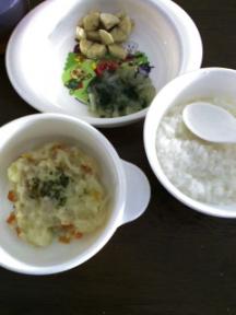 今日の離乳食です。おかゆポテトグラタン風バナナ大根とほうれん草のあんかけでした。 ポテトグラタンは美味しそうな匂いがしてました~。潰したじゃがいもに人参、ホワイトソース、ひき肉をまぜまぜして、レンジでチン。肉に火が通ったら、チーズをかけて更にレンジでチン!上に青のりをのせて完成!!なんだかいつの間にか大人みたいなご飯を食べるようになってきたなぁ~・・・日々成長を感じてます。そうそう、今日は午前中に子育てサロンに行ってきたのですが、10ヶ月の子が来ていて、歩いていました!!びっくり!!よちよち姿が何とも言えず可愛いぃとらももう少しで歩くのかな!?楽しみだぁ~!! 参加してます!