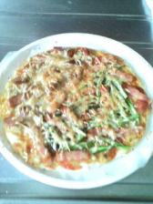 今日のお昼は残り物でピザを作りました。生地は薄力粉100・強力粉100・ぬるま湯100塩少々・オリーブオイル少々を入れてコネコネ。20分位寝かせます。その間にオーブン余熱。250度かなぁ。生地を叩いて適当な大きさに広げて、表面にケチャップを塗り、みじん切りの玉ねぎをパラパラ。 そして具材を乗せます。 今日の具材は・・・アスパラ&ベーコン(バジルをかける)ツナマヨ&ウィンナー(塩コショウをかける)の2種類でした。 最後にチーズを全体にかけたらオーブンで15~20分焼きます。完~成~!!とっても美味しいですよ~!材料費ざっと計算してみたらコレで300円位~♪うちはパパと二人で食べたので一人あたり150円のお昼になりました~。 参加中です。明日はバレンタインだぁぁ。