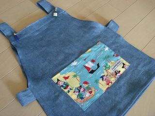 園で何かお菓子を作るらしいのでエプロンを持たせないといけない。1週間前に連絡が来るなんて、のんびりすぎだよ~。さて、エプロンのパターンってシンプルでも女の子っぽいのが多い。でも、わざわざパターン買うほどでもないし、、、で、サイトでフリーパターン見つけました。そーいんぐ.COMの中に男の子がモデルのエプロンが。カーブは真っ直ぐにして、ゴム入れるところはパスして簡単に作りました。110センチサイズなので、若干むすこには大きいので、紐のつける位置で調整。しばらく使えそう。生地は以前自分に作ったノースリーブのワンピースが気に入らなかったのでリメイク。ポケットはC&Sのはぎれパック。去年、上京した際に日暮里に寄ったのですがその時、トマトで見つけたフューズラインテープ。今回、見返しやポケット口に使ってみたのですが、便利だわ~。きれいに三つ折りが出来るし、裁断面から糸くずが出てこないし。1個100円でした。私の買ったのは↓とは違ってラインが1本の物なんですが、それでもやっぱり安かった。フューズラインテープ/FL-10