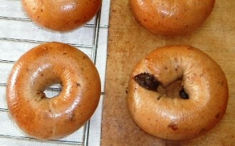 ベーグル自体、ノンオイルでヘルシーなんだけど今日はもっとヘルシーにしたいなぁ~とおもってノンシュガーの全粒粉ベーグルにしました。といっても酵母の餌がないと・・・ってことでオーガニックレーズンを練りこみ、モルトも少し入れてあげました。発酵も早くいい感じいつもよりさらにつやっつやに焼き上がりましたモルト効果かな表面がパリッと軽く色づきも右側の生地には、只今長男のブーム中のキャロブチップがたっぷり入っています。よくばって「もっと入れたい」って入れちゃったのではみ出しちゃいましたが見た目も味も大満足ですいいことありそう