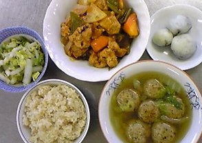 今日は3月10日、水戸の日ミントの日昨年は おひな様バージョンの料理教室 でしたが、娘がいるにもかかわらずすっかり忘れてて今月の料理教室は中華&和メニューです。今回も色どりが地味目な感じですが、味はピカイチレンコンのつみれ汁はうなるウマさでしたいつも食べきれない量なので品数を減らしてあっさりめに~なんて言いながら、しっかりボリューム満点でしたさて、私がつくったものは~・・・。それぞれ、ちょこっとずつ手伝ってうろちょろしていたらお鍋を焦がす始末それも2回目も危うく鍋を火にかけているのを忘れるとこでした。きゃー、楽しいばかりじゃなくて気を引き締めなきゃ 。。。今日のメニューは。。。 玄米ご飯 ベジミートの酢豚もどき れんこんのつみれ汁 白菜の浅漬け 黒五穀の白玉だんご 久しぶりに和のスイーツでしたが、この白玉だんごは我が家でも大人気のおやつです最後にいただいた白玉と煎茶がほっとするおいしさでした最近自宅では番茶やルイボスティーか水が多くて煎茶や緑茶ってあまり飲んでいなかったんだけど、やっぱり日本人は日本茶ねおごちそうさまでした