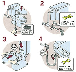 今日は朝からウォッシュレットの取り付けに挑戦名古屋の自宅ではウォッシュレットありなのですが、使い始めると人間堕落するもので、すっかり無いと困るようになってました。賃貸物件を探したときに、なかなか付いている賃貸はなかったのですが、無ければ無いで何とかなるやろと思っていたんですがね…すっかりメーカーの思うつぼの人間になっていくのですね。。。寒い中、ジョーシン電機・門真店まで電車と歩きで20分かけて行きました。便器によっては取り付け不可です うちの便器は標準サイズだと思ってました。というか、便器なんてどれが標準でどれが特殊か見極めできないですよね。で、念のため店員さんに「だいたい付くんやろ?」と聞いたら、店員さん曰く、「ごく稀に取り付けできない便座がある」と言い出すのでカタログにある取り付け可能サイズを持ち帰り、改めてサイズを測ることにしました。測ってみたらやっぱり標準便器でございましたもう一度店に出向いて、TOTOのTCF-314を購入。これにした理由は、松下、東芝は配管工事でタンクに行く配管を交換しないといけないのに対して、これは金具を交換するだけなので、配管の長さなどで取り付けができないなどのリスクが少ないと思えたからでした。実際のところ、取り付けはとても簡単で、30分ほどで完了できました。あとは水漏れが起こらないか、1日様子を見ます。