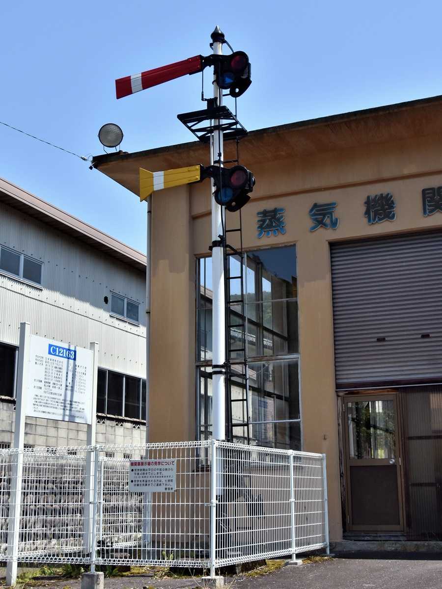 駅横にある「蒸気機関車展示施設」の腕木式信号