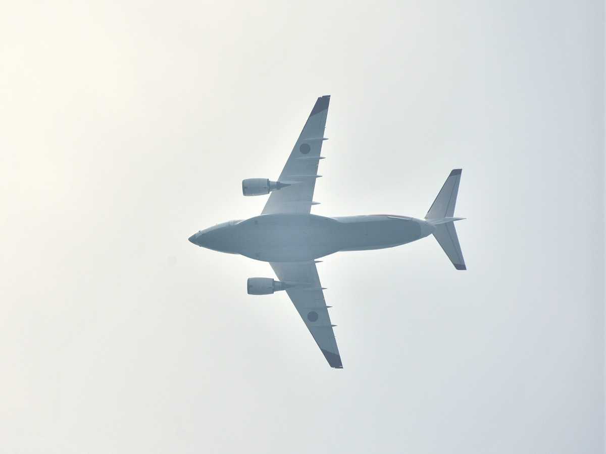 待ち時間に上空をC2輸送機が通過